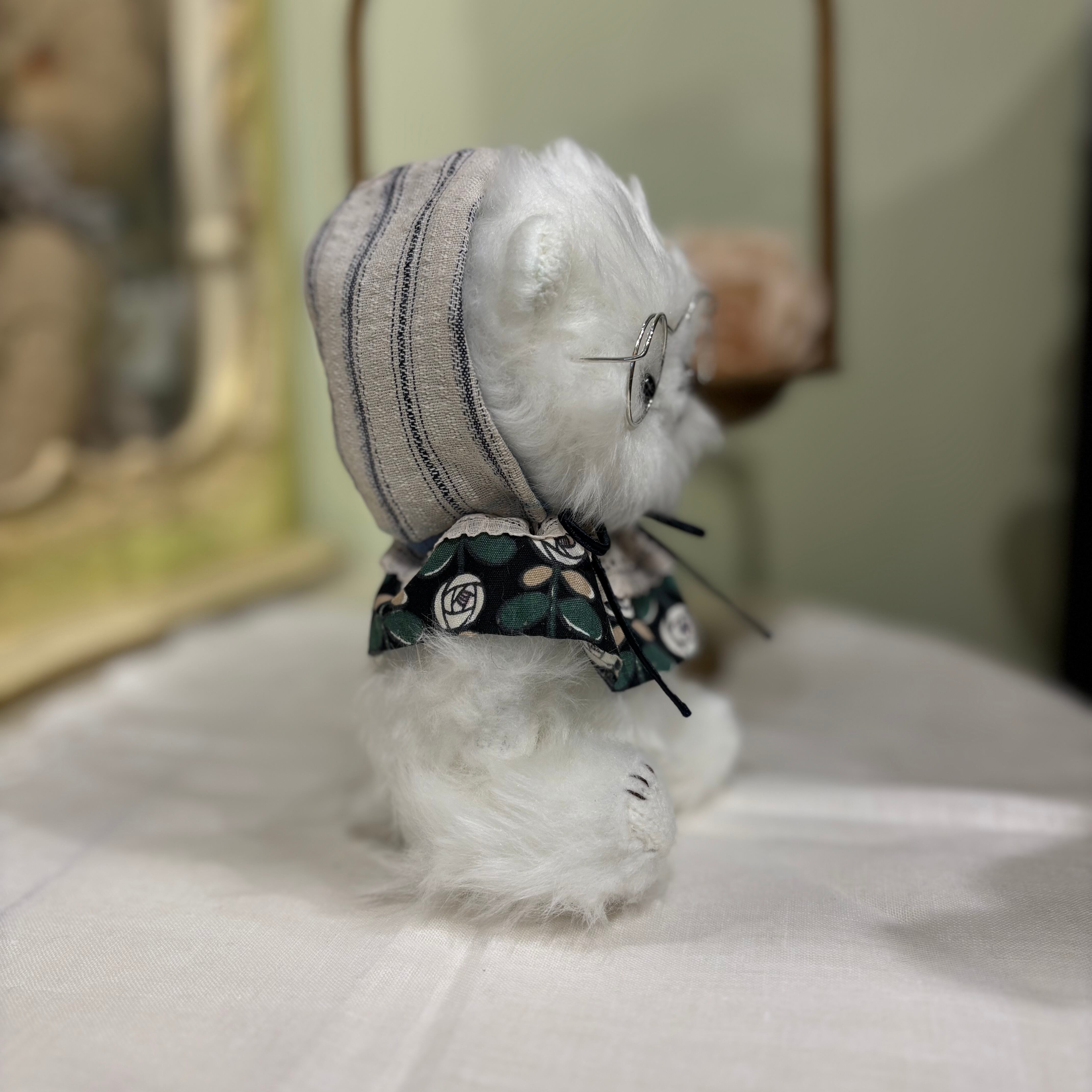 sold※ 作家様作品 いそだ みゆき メガネ白ベア 花えり