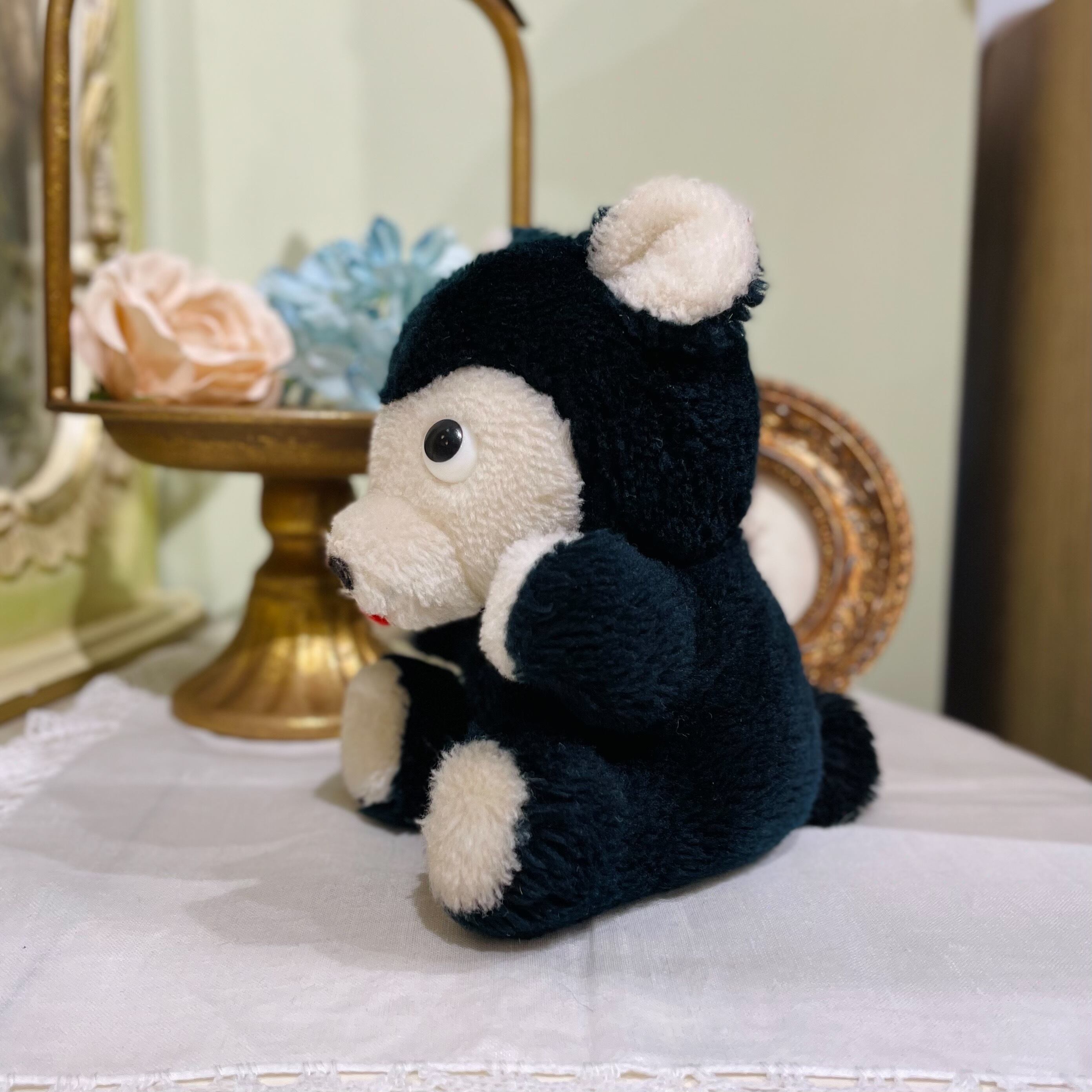 お腹にはおそらくペレットがつめられているかと思います。ポンチ目で黒白ツートンのお顔がレトロでとても可愛いです。