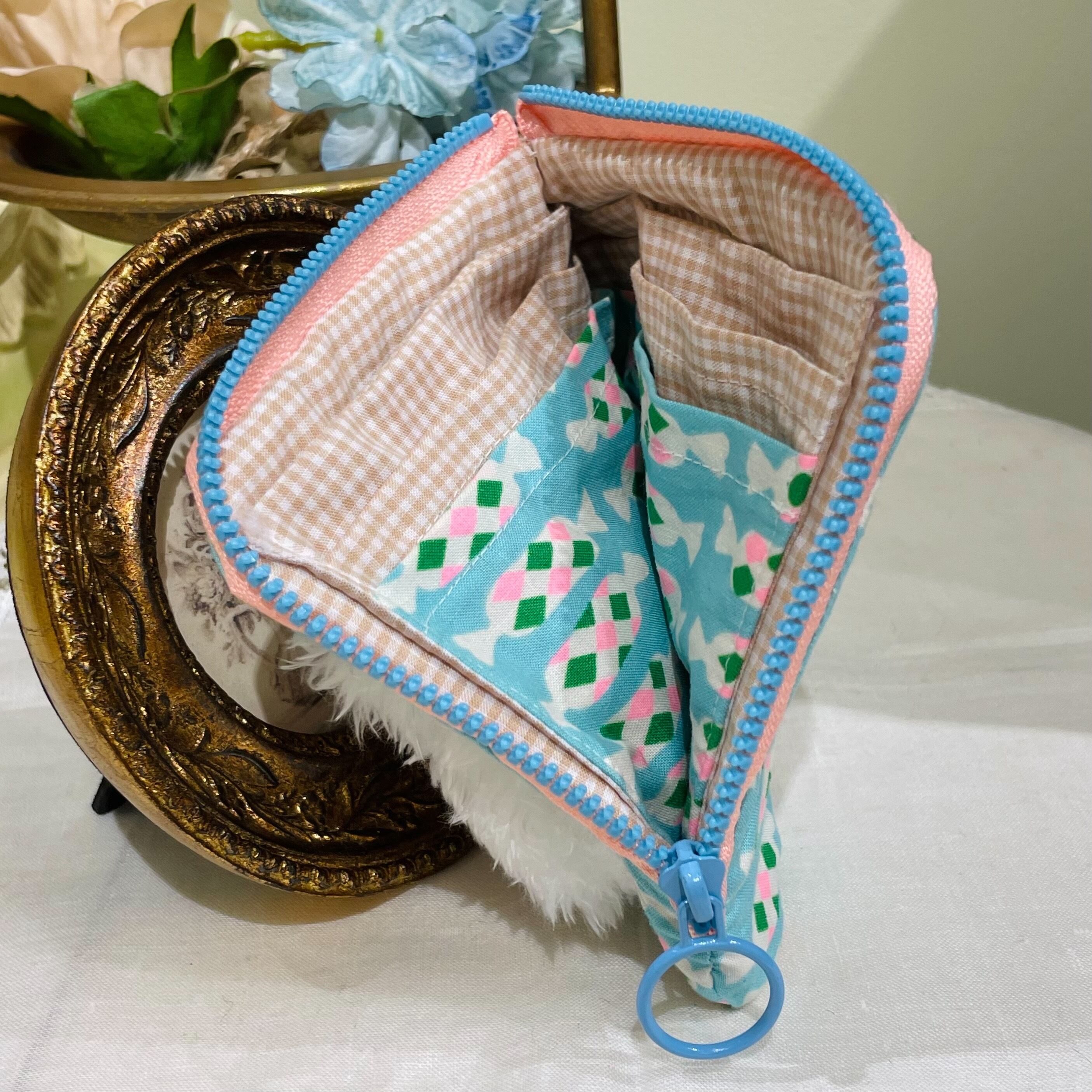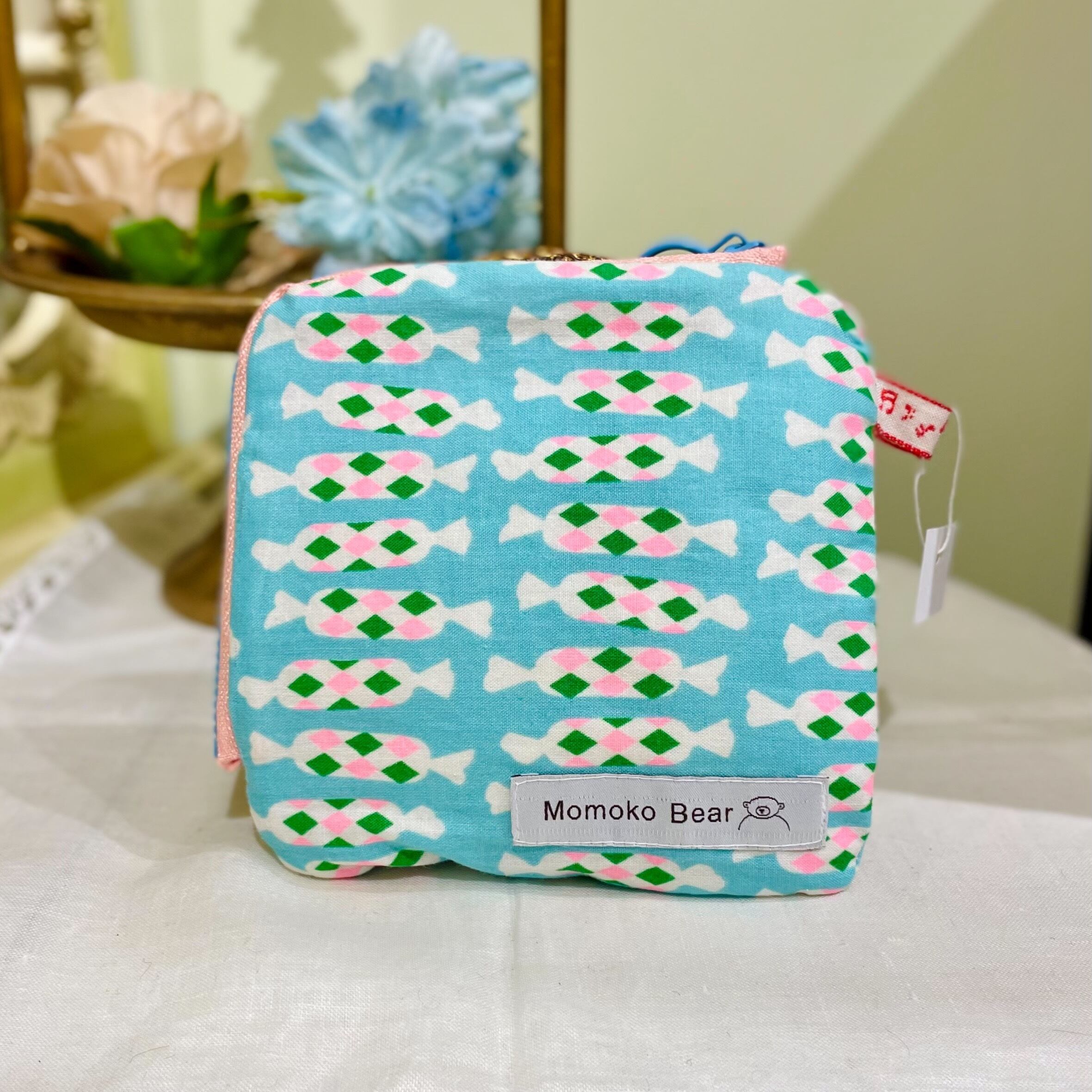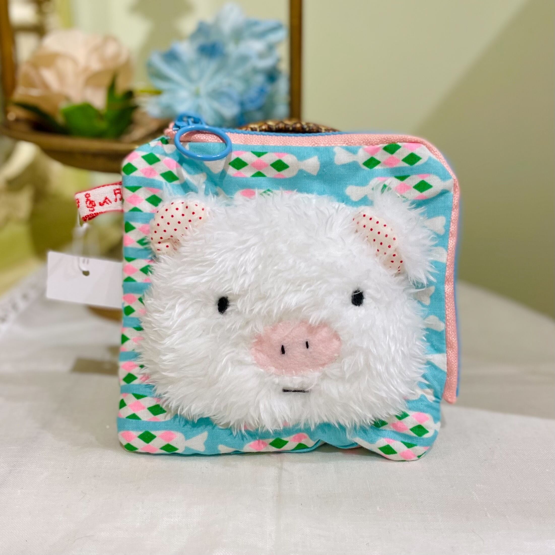 作家様作品 Momoko Bear 内側ポケット付き L型ポーチ(ホワイトピッグ)