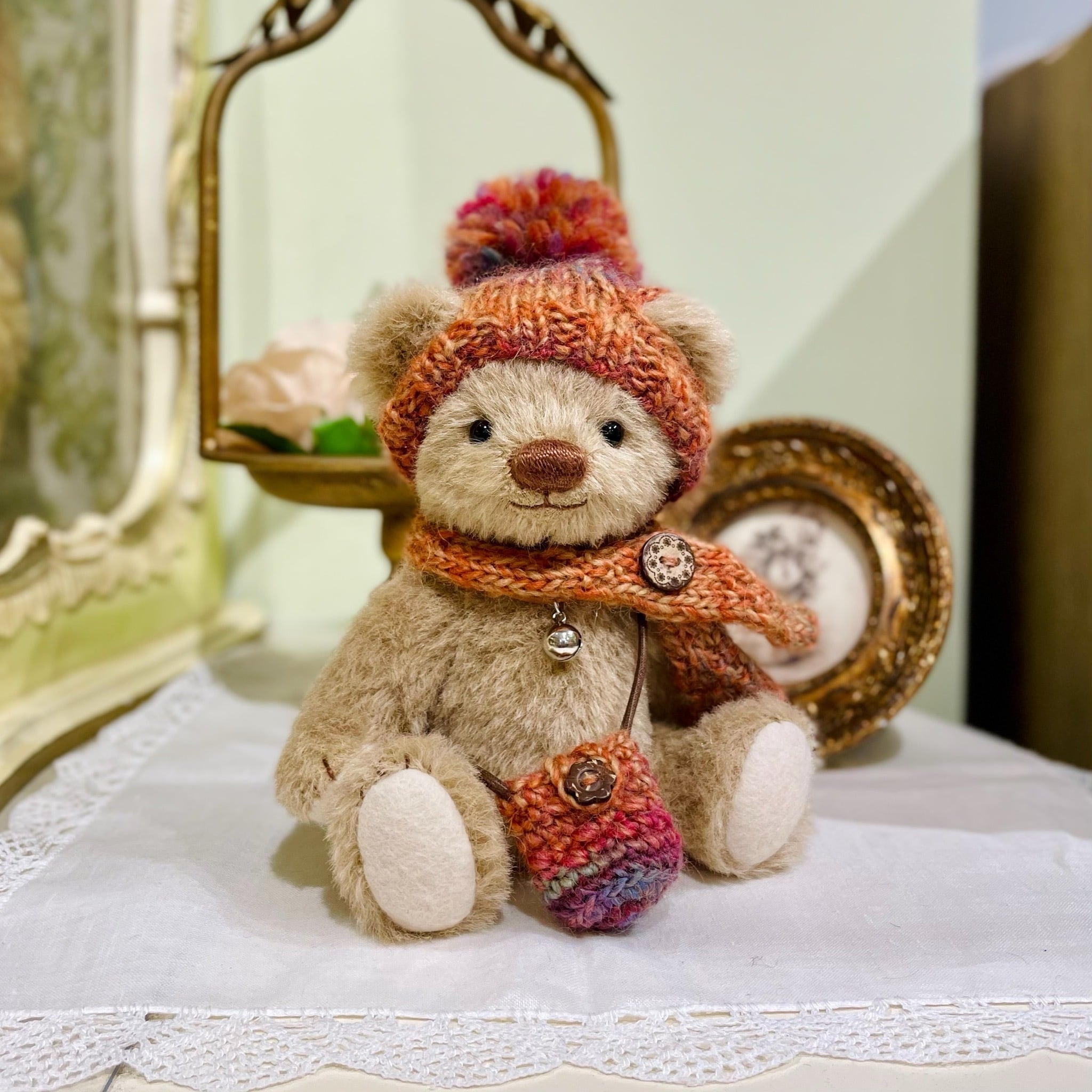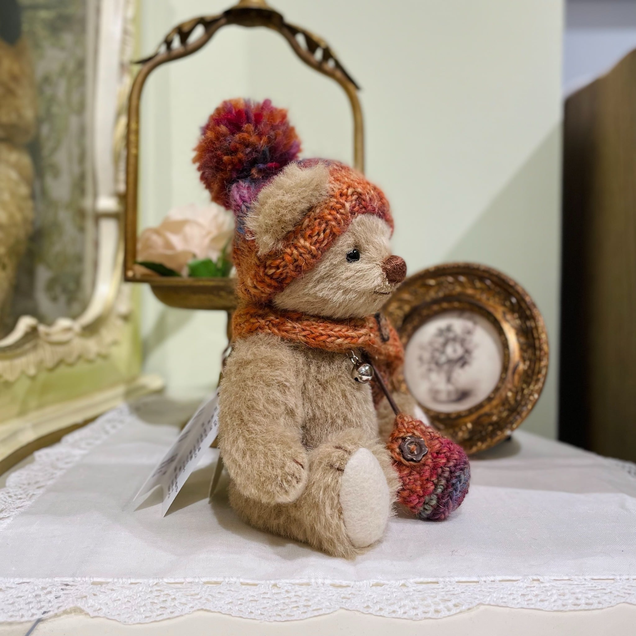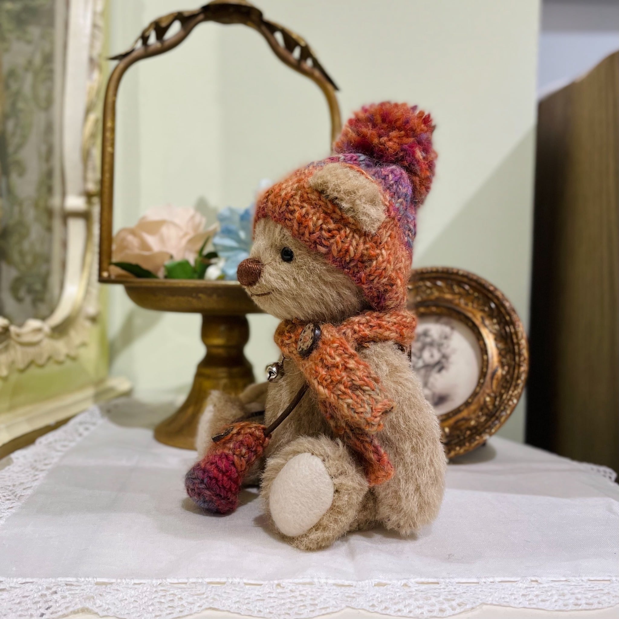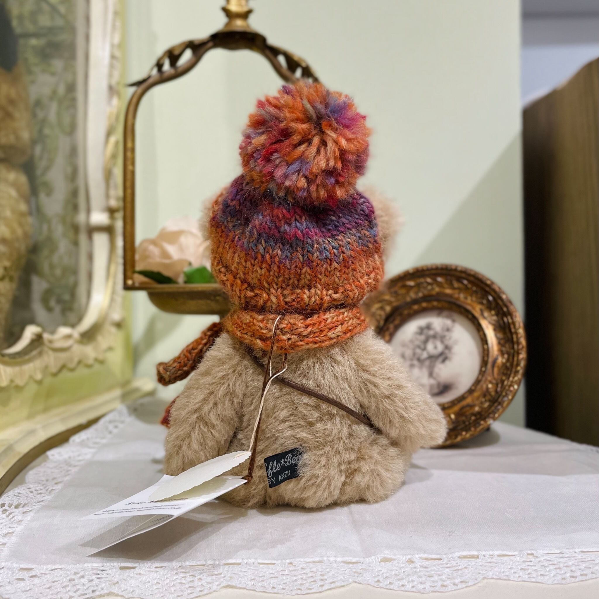 Sold※作家様作品 Fluffle*Bear ポンポンニット帽の茶クマちゃん