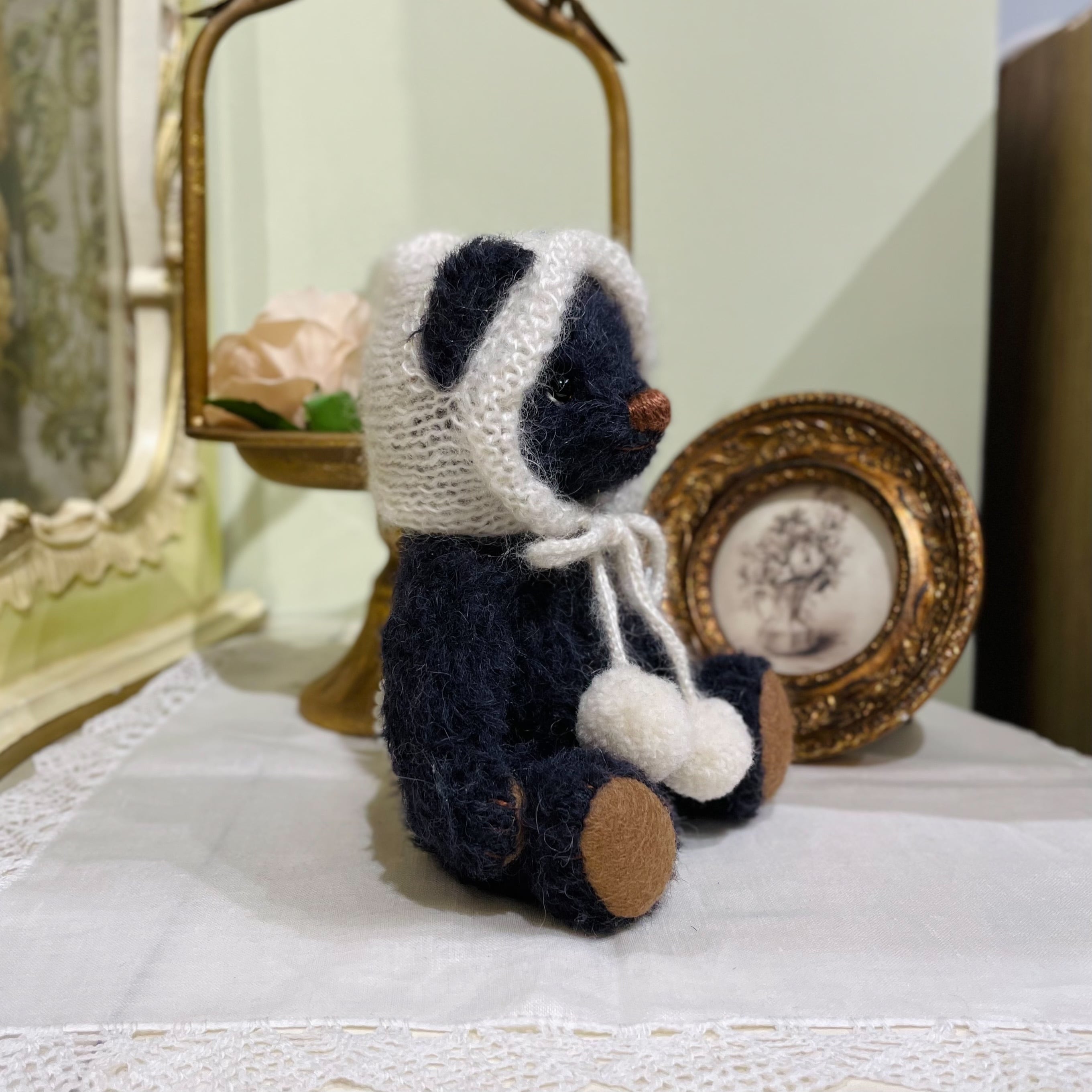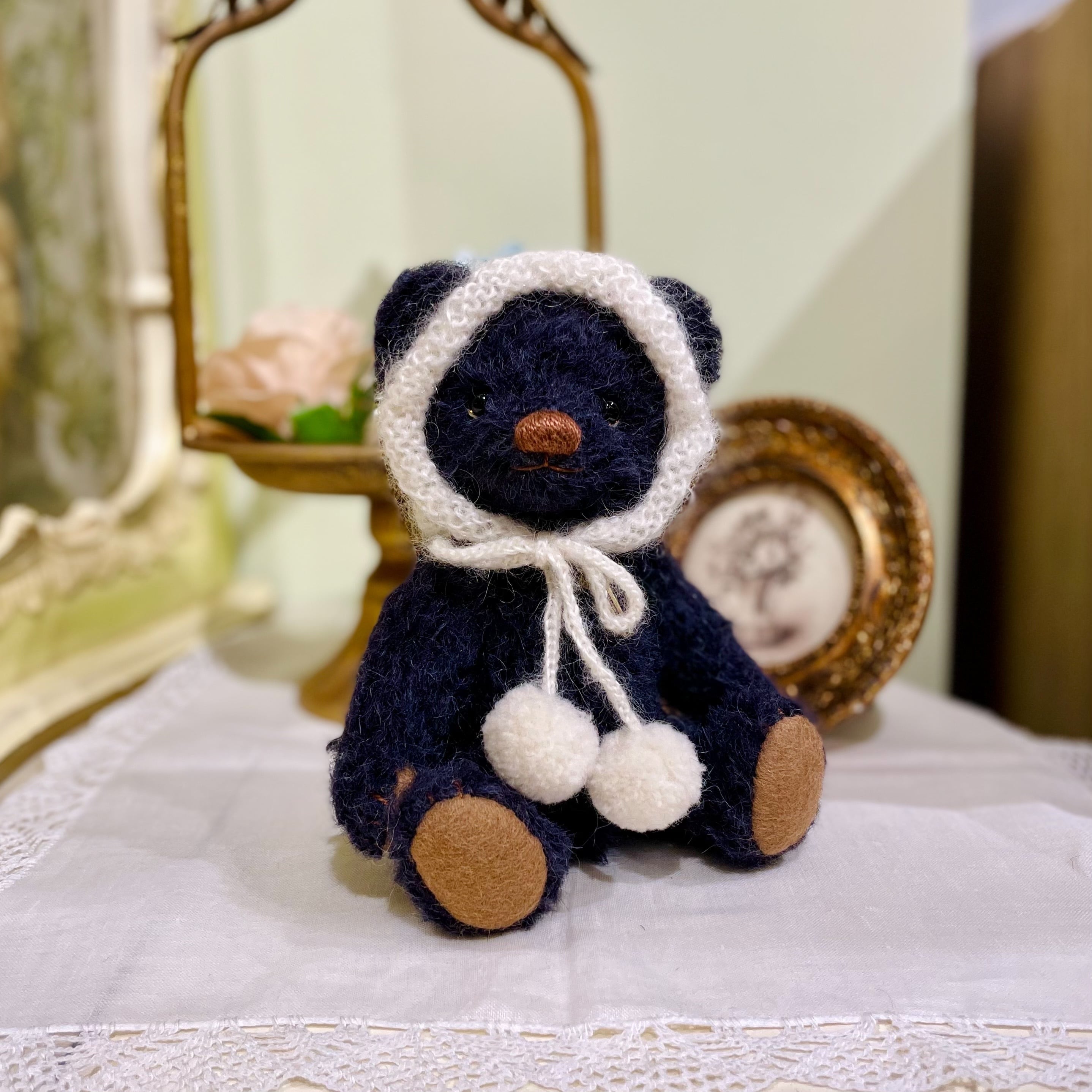 Sold※作家様作品 Fluffle*Bear ふわふわ帽子の黒クマちゃん