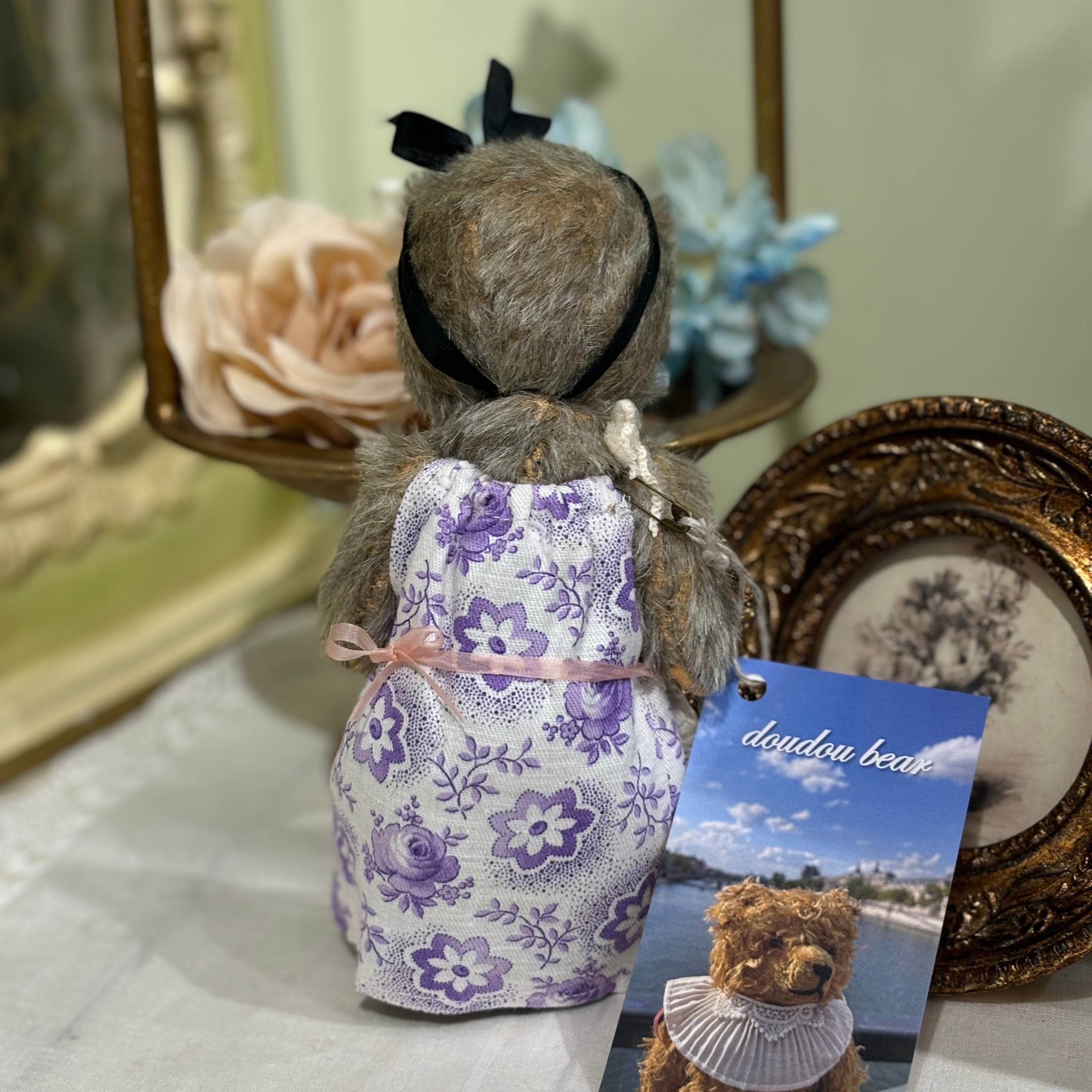 作家様作品 doudou bear ベア グレーベージュ 小 紫花柄ワンピ