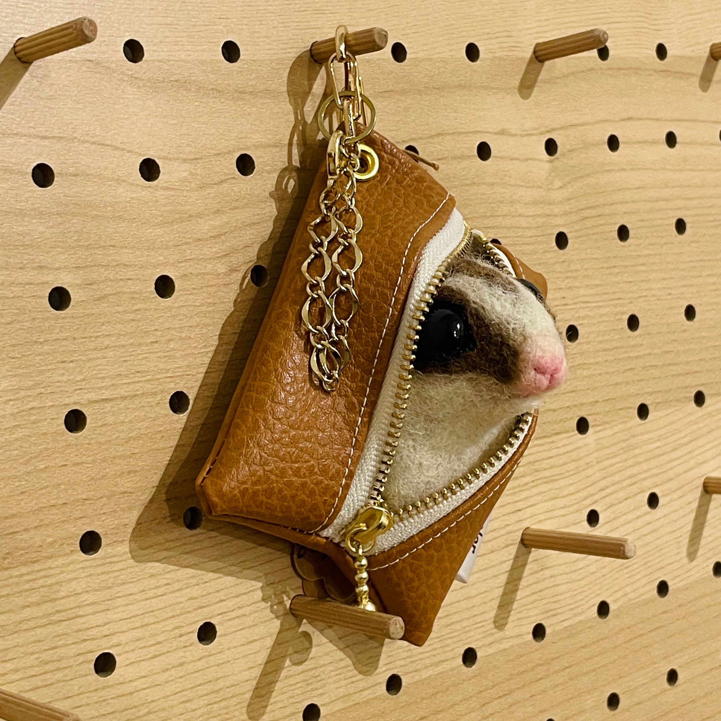 作家様作品 color woolfelt アニマルポーチ(バッグチャーム) フクロモモンガ 茶