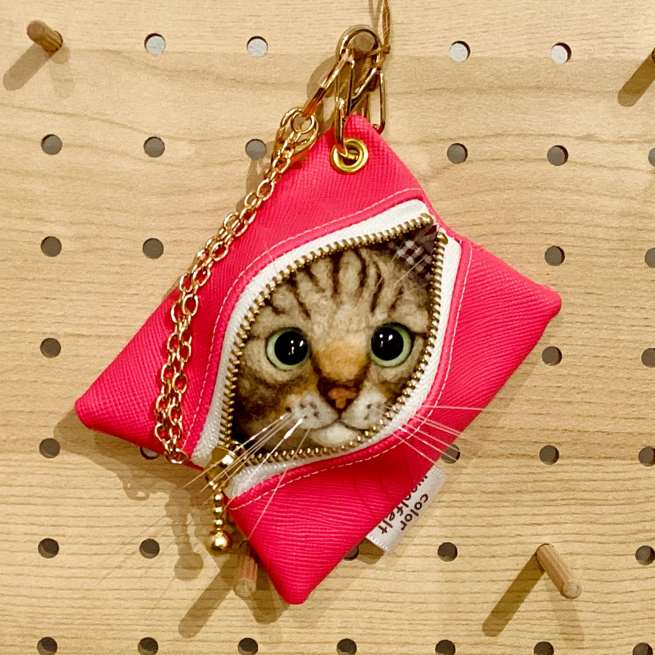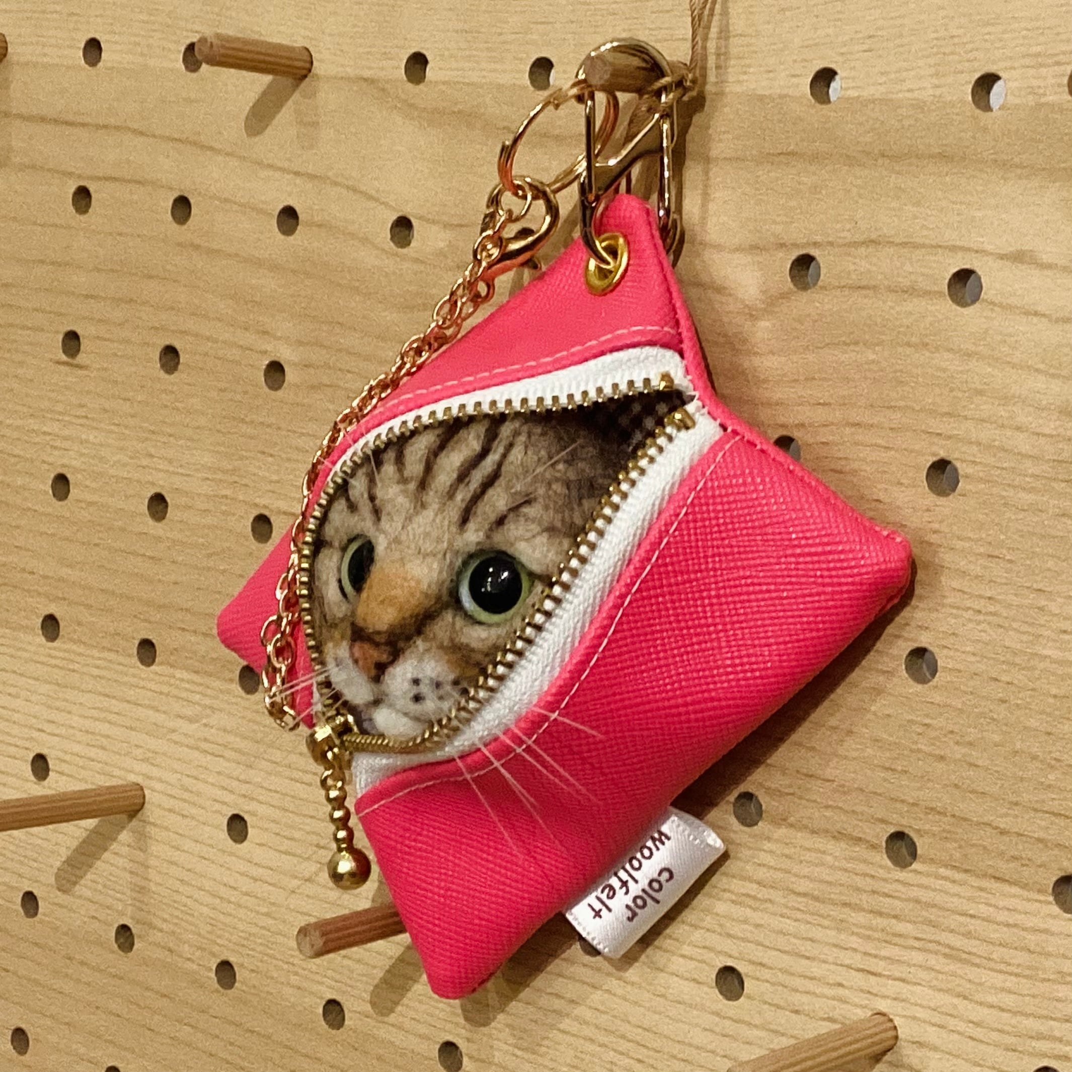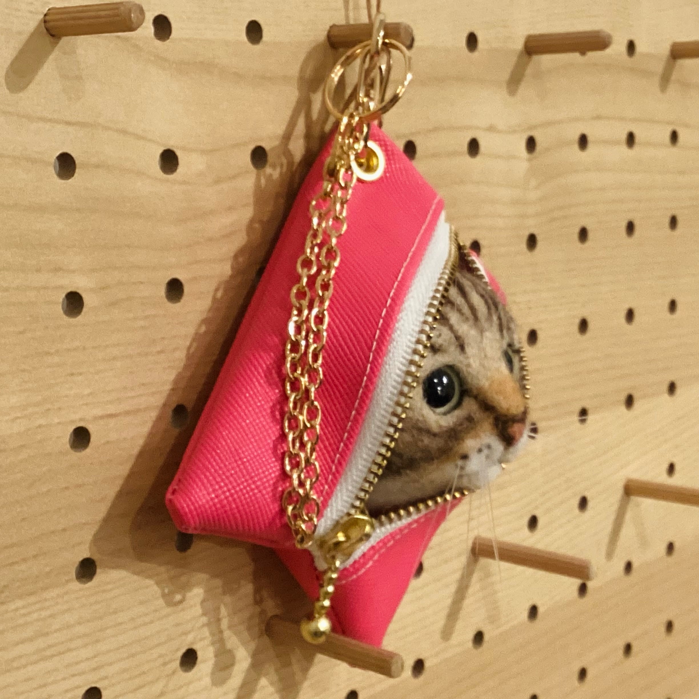 Sold※作家様作品 color woolfelt アニマルポーチ(バッグチャーム) ネコ ピンク①