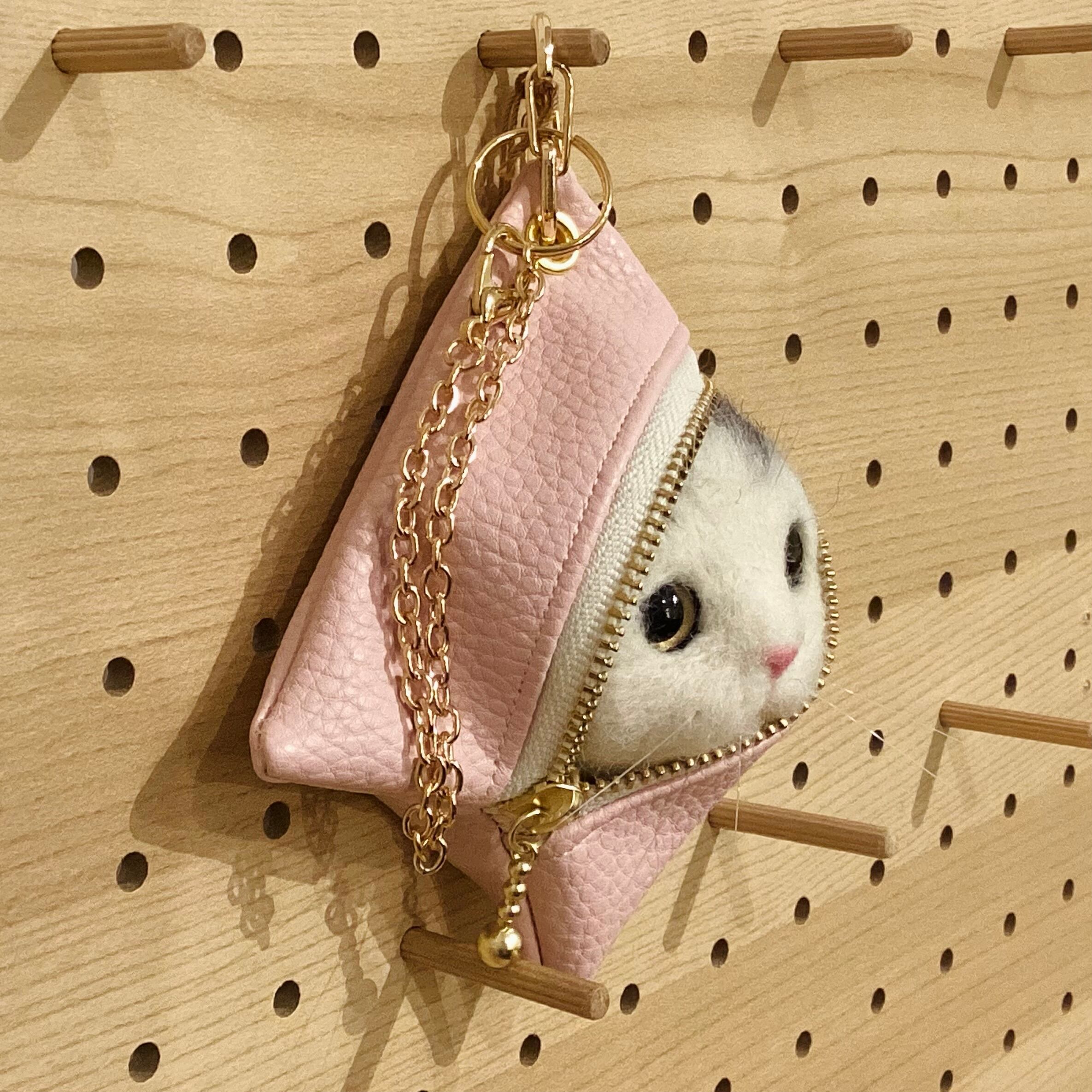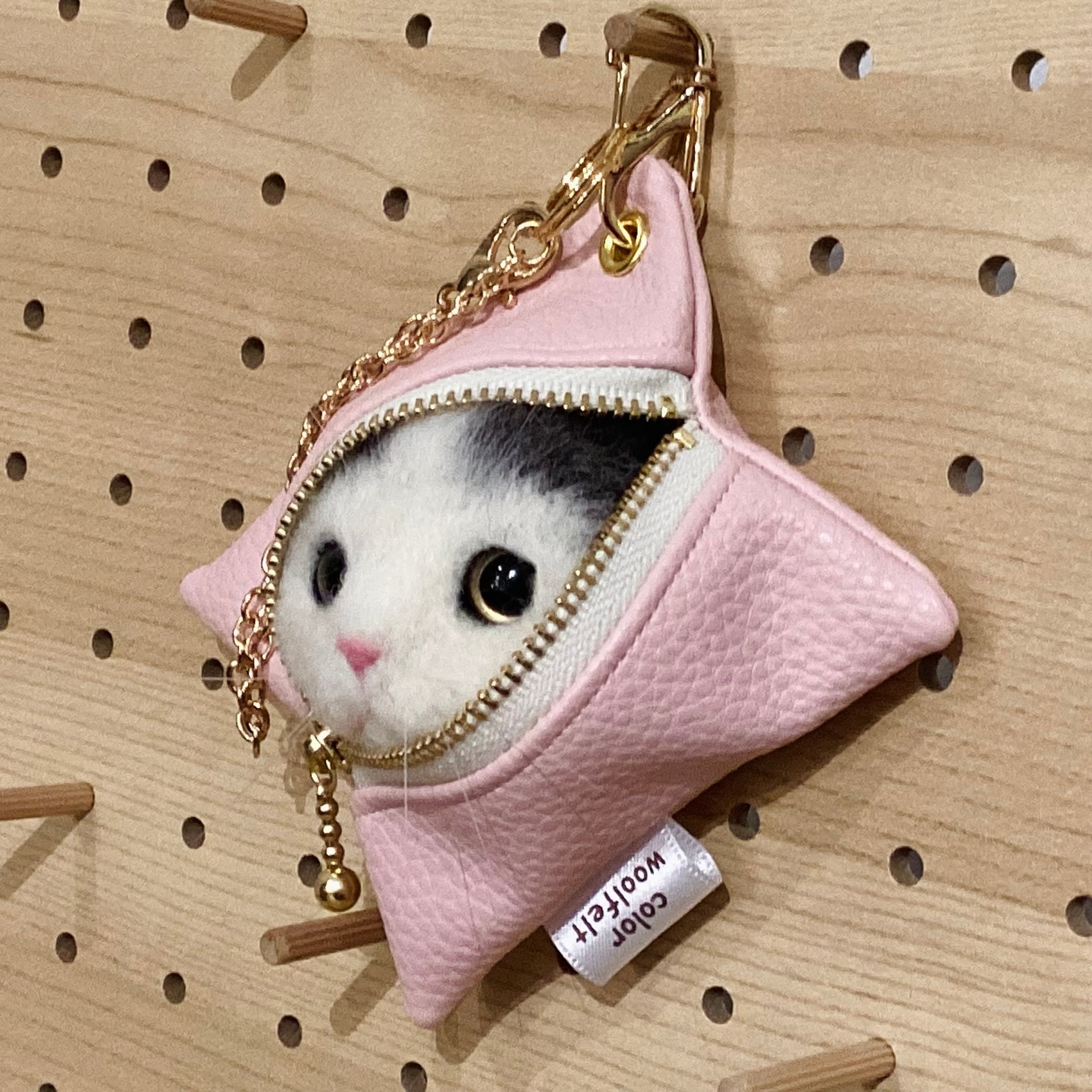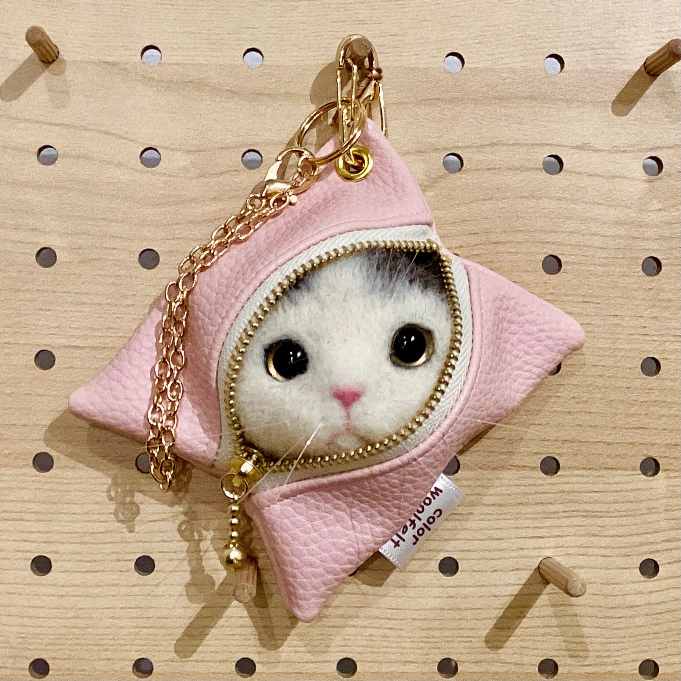 sold※ 作家様作品 color woolfelt アニマルポーチ(バッグチャーム) ネコ ピンク②