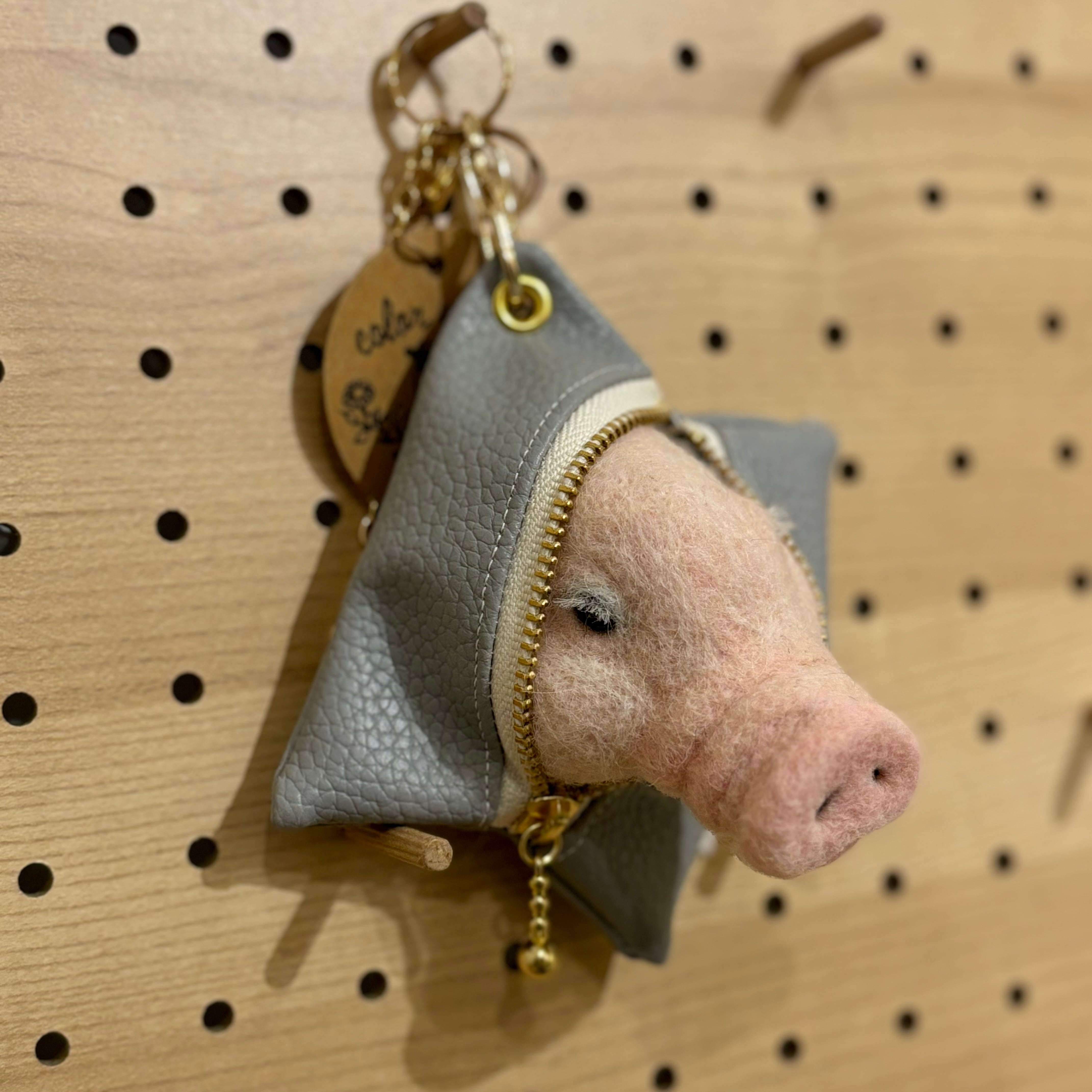 作家様作品 color woolfelt アニマルポーチ(バッグチャーム) マイクロブタ