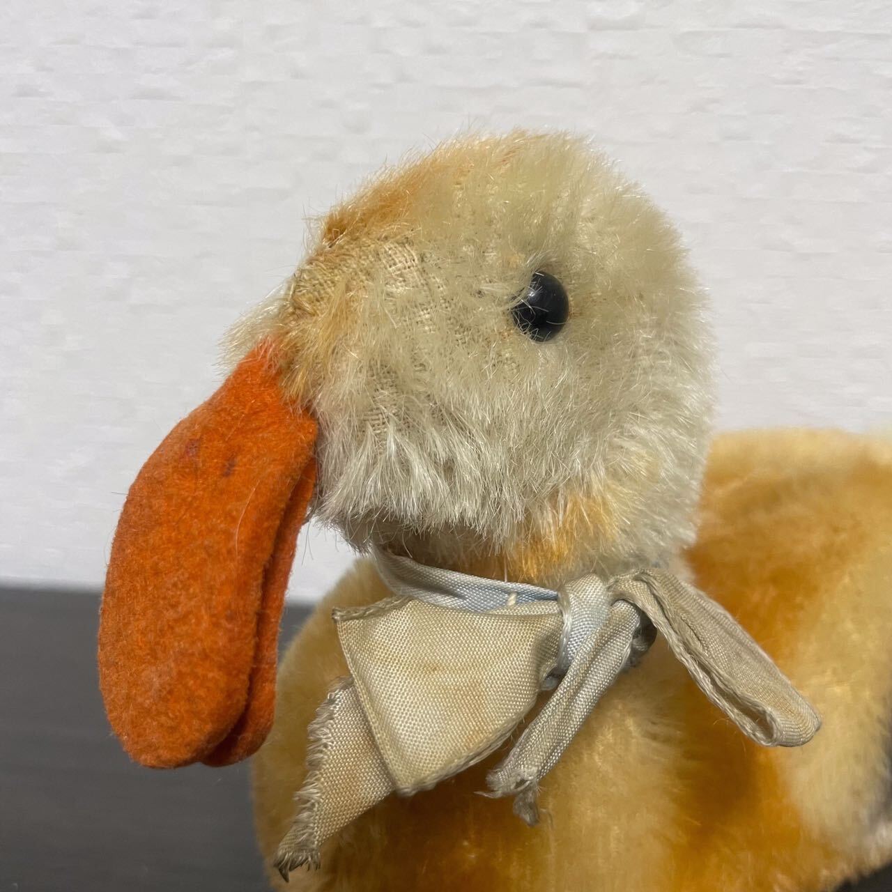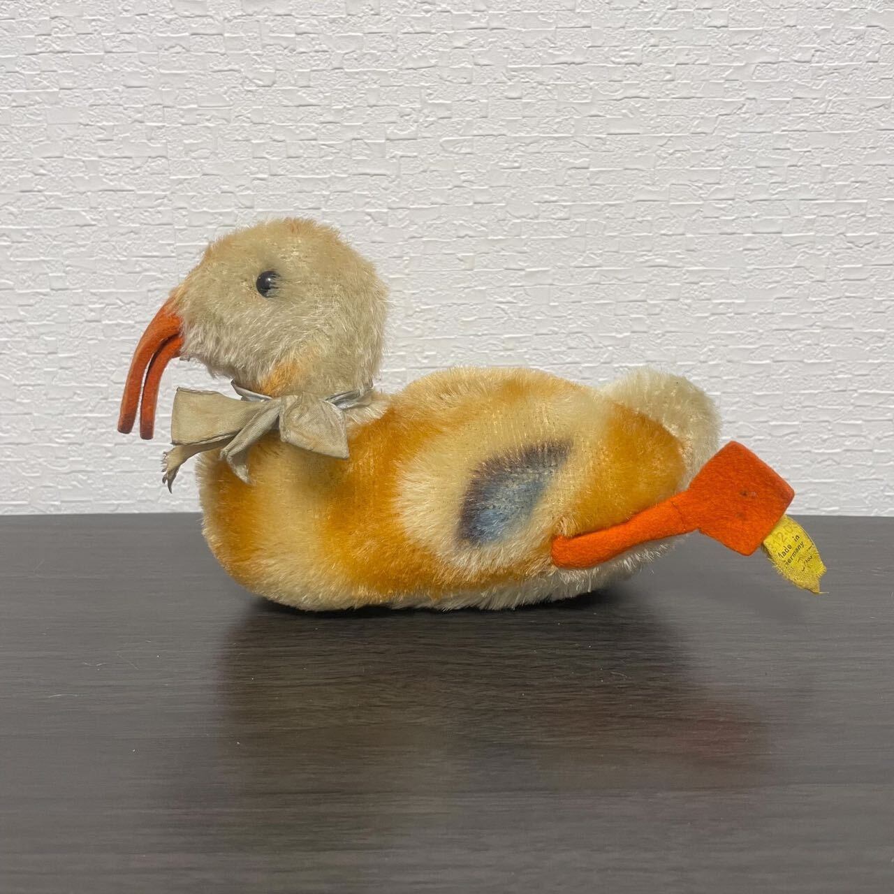 steiffの「 Play Duck 」というカモのぬいぐるみです。くちばしと水掻きはフェルト、ボディは