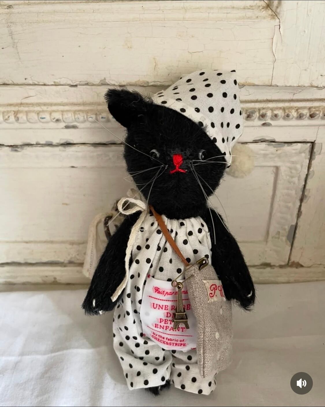 Sold※作家様作品 doudou bear 黒ネコ 小 ドット柄お洋服